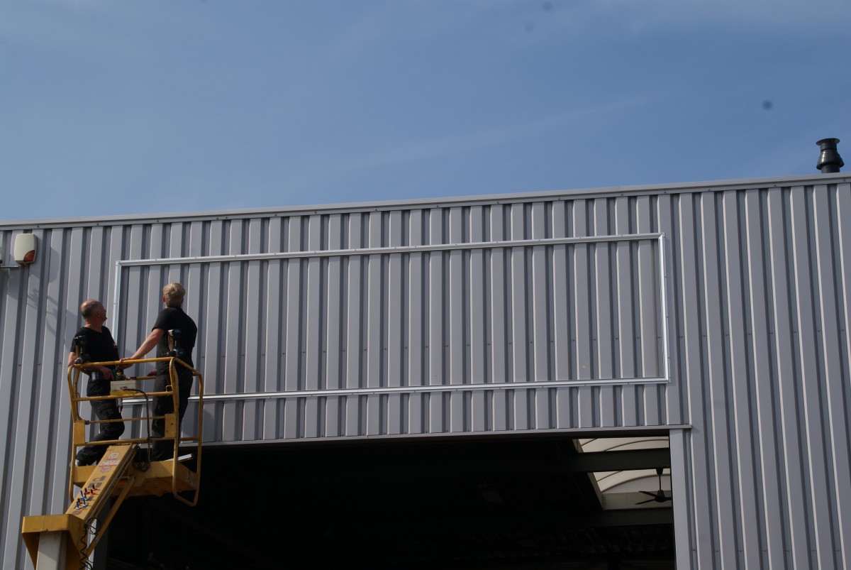 Projectomschrijving Het eigen pand voorzien van een zuil met spandoek en een spandoekframe aan de gevel